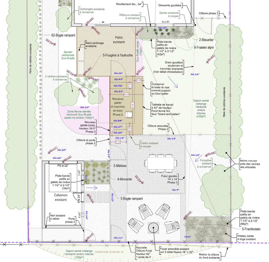 Nous avons fourni un service complet de conception et de planification, en nous concentrant sur les besoins spécifiques de la famille et en collaborant avec des entrepreneurs pour la réalisation des travaux. Notre mission était de transformer leur cour en un espace harmonieux, pratique, et adapté à leur mode de vie, tout en anticipant de futures évolutions possibles du projet.