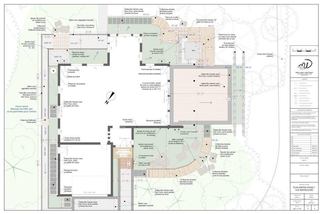 L’objectif était de concevoir et d’adapter l’aménagement paysager de la résidence familiale construite dans les années 70, située sur un terrain en pente et ponctuée de végétation mature. Les propriétaires souhaitaient créer un espace extérieur convivial, en cohérence avec les rénovations du bâtiment, tout en conservant l’intimité et le côté naturel du site. Ce projet a été conçu pour accueillir leurs enfants et petits-enfants, transformant la résidence en un lieu de rassemblement familial.